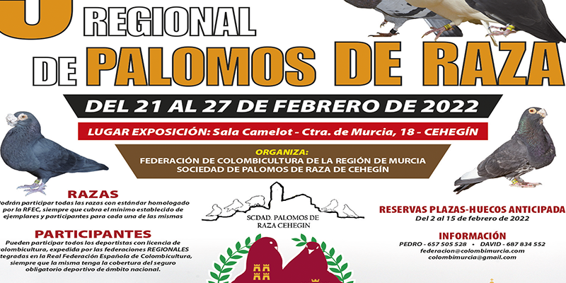 Requisitos de participación 5º Campeonato Regional de Palomos de Raza – Cehegín 21-27/2/2022
