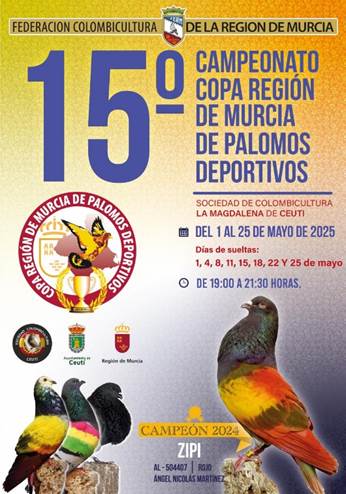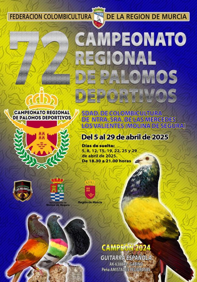 El próximo día 8 de abril de 2025, comienza el campeoanto regional de palomos deportivos en la localidad de LOS VALIENTES (MOLINA DE SEGURA).